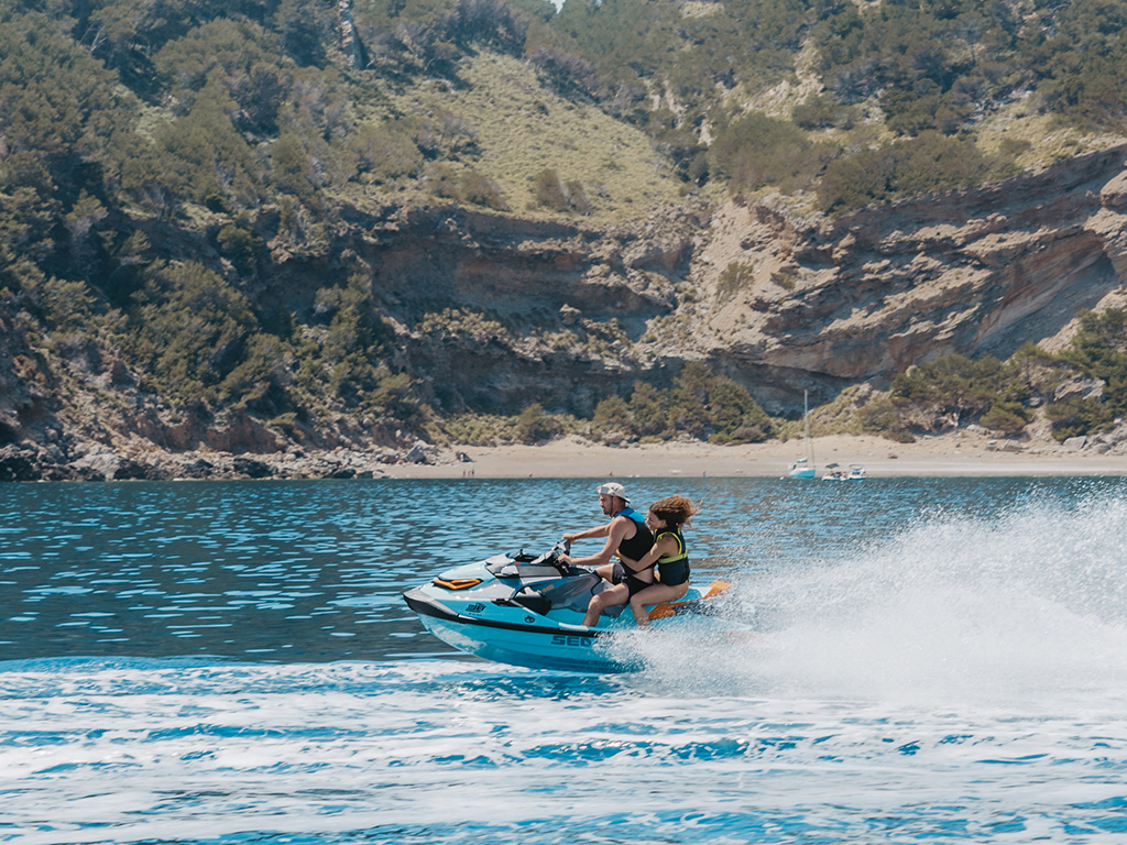 Erleben Sie den ultimativen Adrenalinkick bei unserer Jet-Ski VIP Tour entlang der atemberaubenden Küste Mallorcas. Diese zweistündige Tramuntana-Tour führt Sie durch die beeindruckende Bucht von Estallencs sowie die malerische Bucht Ortigues. Genießen Sie zudem einen besonderen Stopp, bei dem Sie mit einem Sea Scooter die Unterwasserwelt erkunden können.